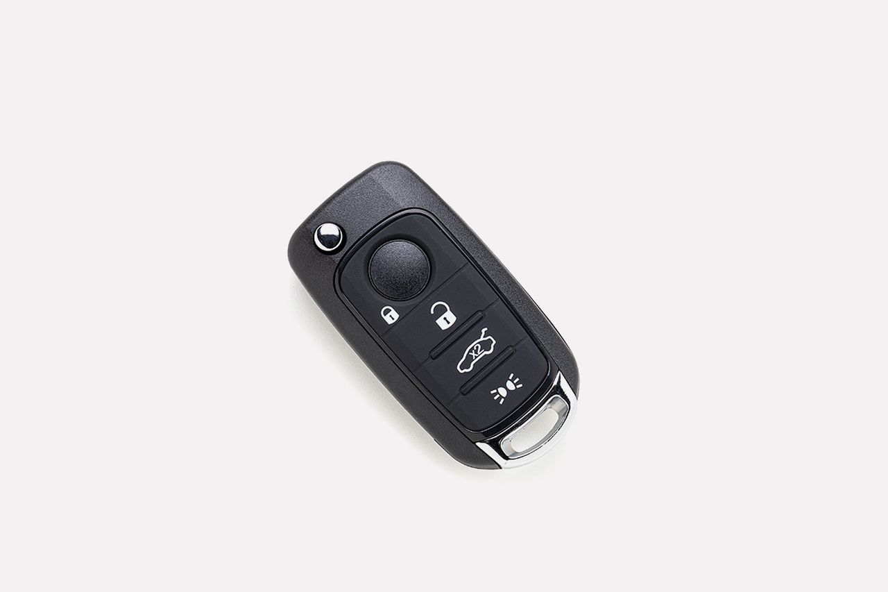 Der Schlüssel hat vier Tasten (Zentralöffnung/-verriegelung der Türen, Gepäckraumöffnung, Licht) und kann mit Smart Pro programmiert werden.